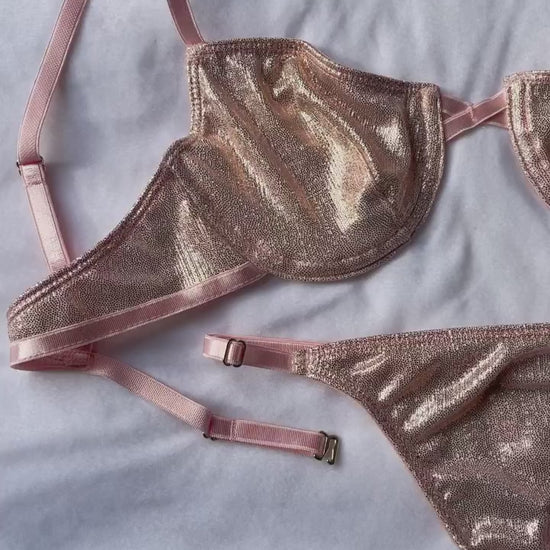 El Set Helena está elaborado en lycra con delicados detalles de brillo en cada una de sus telas, pensadas para destacar tu estilo con sofisticación.
